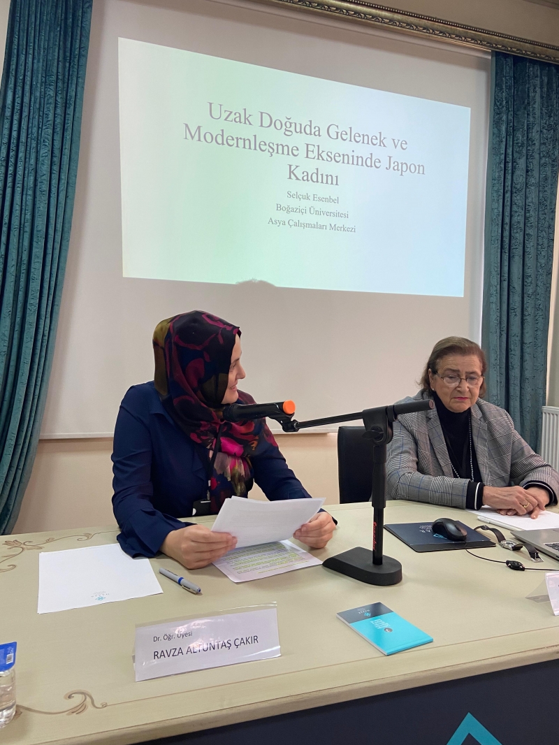 Uzak Doğu’da Gelenek ve Modernleşme Ekseninde Kadın Çalıştayı’nda Boğaziçi Üniversitesi Tarih Bölümü ve Asya Çalışmaları Merkezi’nden Prof. Dr. Ayşe Selçuk Esenbel, Dr. Hyun Woong Hong, Dr. Öğr. Üyesi Hale Eroğlu, Dr. Öğr. Üyesi Ravza Altuntaş Çakır moderatörlüğünde konuşma yaptılar.