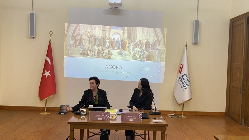 22 Nisan Salı günü Fatih Sultan Mehmet Vakıf Üniversitesi Gülhane Yerleşkesi’nde düzenlenen “Toplumsal Cinsiyet ve Sinema Okumaları: Agora” başlıklı etkinlik kapsamında Arş. Gör. Dr. Berna Terzi Eskin moderatörlüğünde Dr. Öğr. Üyesi Emine Tonta Ak'ı dinledik.